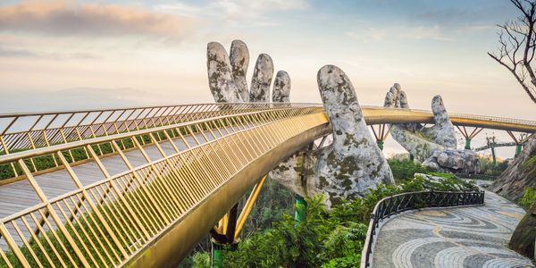 Ba Na Hills is a mountaintop resort just outside Danang, known for its record-breaking cable car, cooler mountain air, and the iconic Golden Bridge held up by giant stone hands. There’s a mix of things to see—French-style buildings, temples, gardens, cafes, and even a small amusement park. It’s a fun, slightly surreal place with big views and lots to explore.